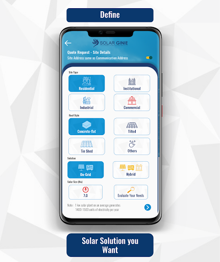 Solar Ginie acts as a marketplace wherein Customers and Implementers can do business using a Digital Cloud based mobile platform. Its focus is towards