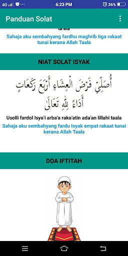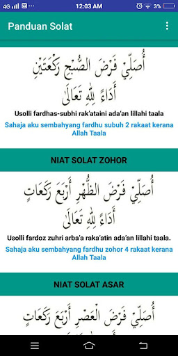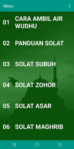 This application was developed as a tool to help individuals learn the basics of basics muslim prayers. It is equipped with prayer guides, taking prayer water(wudhu), "Solat Fardu" and "Doa". The advantage of this application is that it is able to help individuals establish prayers easily with the help of this application. This application also provides reading voice to make it easier for users to learn and memorize.