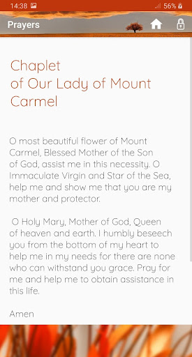 The Application includes different prayers to Our Lady of Mount Carmel. The best solution to pray daily.