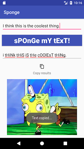 This application will easily and appropriately convert your text into acceptable Sponge Bob Meme standards. You can edit the text afterwards and easily copy it to use in a tweet or post.