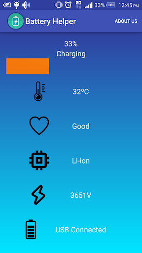 Battery Helper is a free and simple app that will help you follow battery status, condition, technology, temperature, voltage and type of connection.