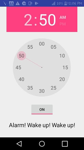 By this app you can set the alarm and Press Turn Off to Turn On.Alarm will be ringing.Just You set The Time And Press Turn Off to Turn On.This App is designed for set the alarm time and ringing the bell.
