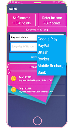 This app a multi level referral earning system by which you can earn real cash money. You need to comelete some task every day and you will get paid for that. Also you can create team. The more members in your team the more you can earn.