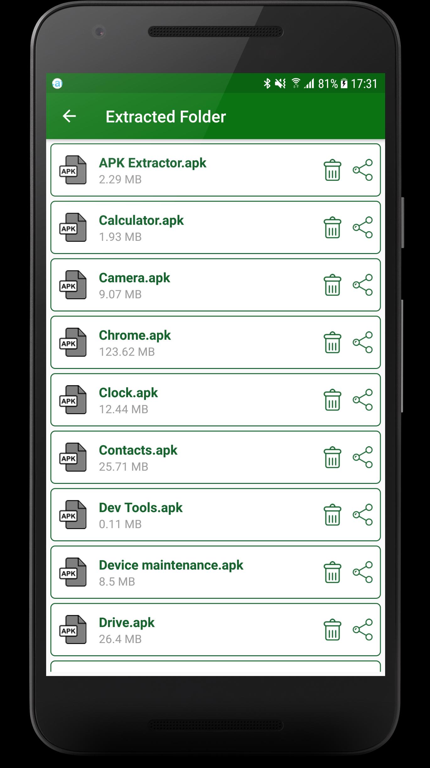 ★ Show all extracted apks in folder to install, delete and share apk easily.