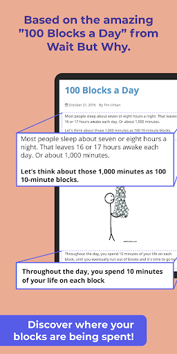 - A blocks-based visualization of every single day: time block your way to your goals and end procrastination!