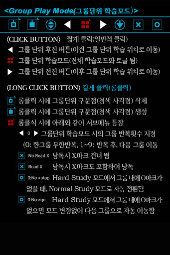 1. 영어학습의 최대 난제인 난청파트(잘 안들리는 문장)는 'O'마크, 스킵하고 싶은 문장 혹은 파트는 'X'마크를 표시하여 필요에 따라 취합하거나 소거하여 집중 구간반복재생학습을 가능케 한 영어반복학습의 최고봉
