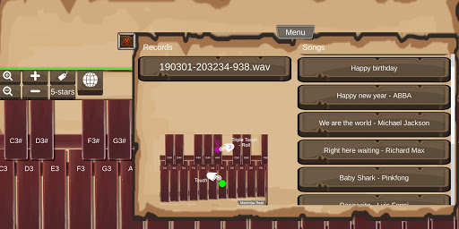 The Marimba Royal is simulation app using yarn mallet with roll feature. Full Frequency range: C2 -> B6.