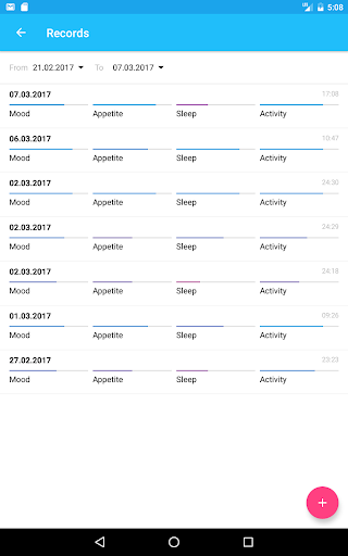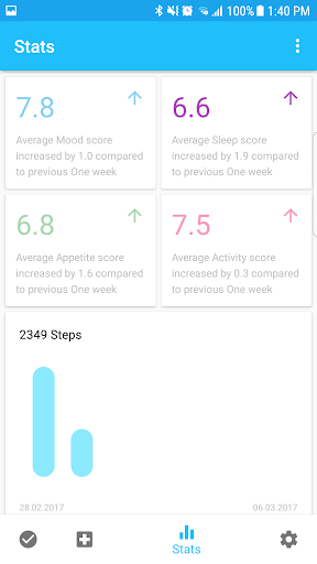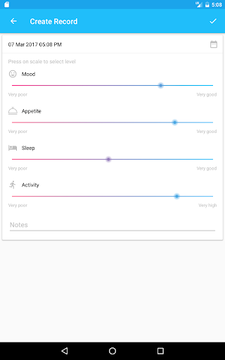 — Make text notes to add additional information to your daily records when logging mood, activity, sleep, and appetite.