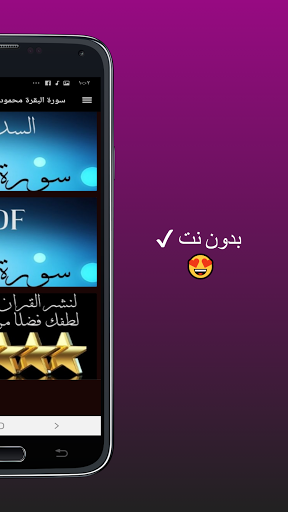 📺 Surat Al-Baqarah Mahmoud Khalil Al-Hosari without Net Includes many icons with wonderful and beautiful backgrounds to serve the user simply and without the slightest complication, as Surat Al-Baqarah Mahmoud Khalil Al-Hosary was designed without the net