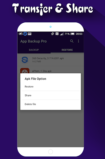 ★App Backup Restore Pro is to Backup & Restore apps and personal (contact/SMS/call) to local or cloud, Transfer & Share apps, personal and media (photo/music/video) for Android devices.
