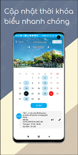 Ứng dụng giúp xem thời khóa biểu, cung cấp tài liệu, tham gia khảo sát, nhắn tin kết nối các sinh viên, giảng viên, khai báo sức khỏe và hơn thế nữa...