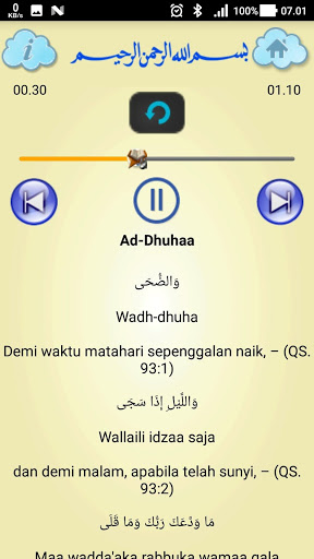 Juz Amma : Penambahan Tombol Back, Next, Repeat Track.