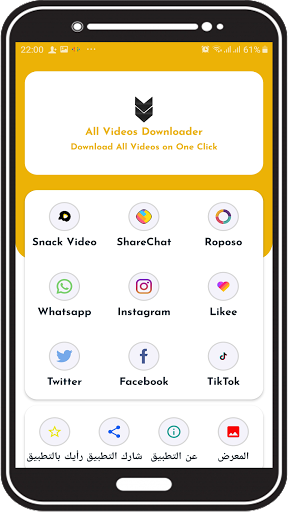 The video download application is a video download program from Laiki, also, that it is characterized by the ability to download from one of the most important social networking sites, which is downloading videos from Snap, Roboso, Share Chat, and Snack video.