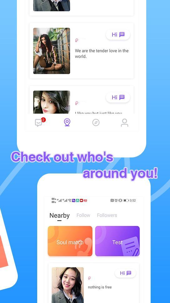 Receive profiles of people around you, view their photos, signatures and interests to review them better, like your favourite profiles with a “Hi!”, isn’t that easy?
