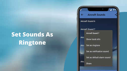 Aircraft Sounds can be used as the sounds as a Phone ringtone, notification tone, alarm tone and Message ringtone by simply press and hold on the desired sound, and make your selection.This app comprises awesome and high quality collection of Weapons Sound. Download our app now!! We assure you that you will have a lot of fun with our Aircraft sound ringtones.