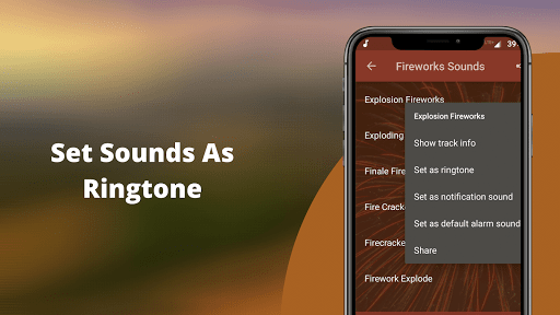 Fireworks Sound App contain awesome & entertaining Fireworks Sounds and you will get hours of fun and amusement tapping and listening cool fireworks for any occasion like parties, Christmas or just celebrate year round occasion. To save the sound as a ringtone, notification or alarm sound, simply press and hold on the desired sound, and make your selection.
