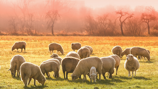 Sheep are most likely descended from the wild mouflon of Europe and Asia. One of the earliest animals to be domesticated for agricultural purposes, sheep are raised for fleece, meat (lamb, hogget or mutton) and milk. A sheep's wool is the most widely used animal fiber, and is usually harvested by shearing.