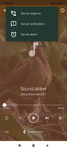 Zebra Dove Sounds app Features: