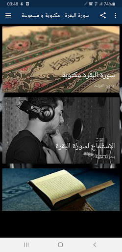 Surat Al-Baqara - written and audible is an application that specializes in reading and listening to Surah Al-Baqarah. The application of Surat Al-Baqara - written and audible contains audio clips of Surat Al-Baqara in full with the voice of a number of Islamic world readers such as Surat Al-Baqarah with the reciter's voice Islam Sobhi and Surat Al-Baqara with the voice of the reciter Abdul Basit Abd As-Samad and Surat Al-Baqarah in the voice of the reciter Saad Al-Ghamdi and Surat Al-Baqara in the voice of the reciter Maher Al-Moaikli and Surat Al-Baqara in the voice of the reciter Raad Al-Kurdi and Surat Al-Baqara in the voice of the reciter Zaki Al-Daghistani and Surat Al-Baqara in the voice of the reciter Abdul Rahim Massad and Surat Al-Baqara in the voice of the reciter Ahmed Al-Ajami and Surat Al-Baqara in the voice of the reciter Yasser Al-Dosari and Surat Al-Baqara with the voice of the reciter Faris Abbad