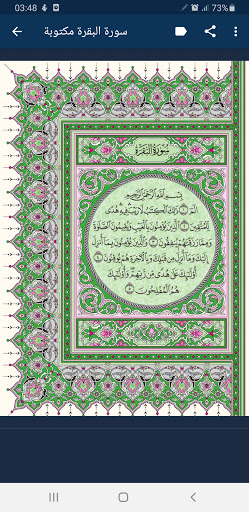In addition to listening to all of the aforementioned readers, there is Surat Al-Baqara written in the form of pages in the application of Surat Al-Baqara - written and audible