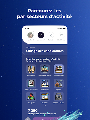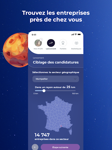 Envoyez vos candidatures spontanées aux entreprises à proximité, elles sont identifiées à l'aide de notre algorithme. Tous les secteurs d'activité sont représentés. Vous cherchez un emploi, un stage ou une alternance ? Vous souhaitez vous démarquer des autres candidats ? Utilisez Space Monk et accédez à plus de 2,6 millions d’entreprises répertoriées en France, mais également plus de 1500 sous-activités recensées dans l’application.