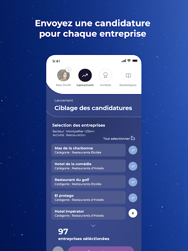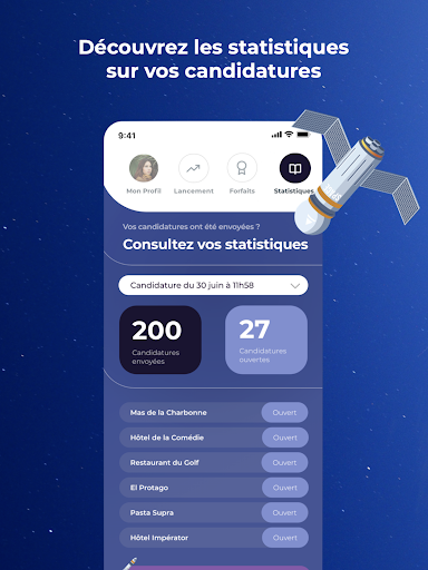 Découvrez également nos forfaits de candidatures disponibles en achat in-app à tout moment pour améliorer vos chances.
