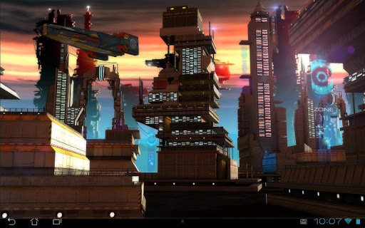 SPACE CITYSCAPE 3D LWP made with OPEN GL 2.0 and optimized to consume low resources and also not to drain your battery.