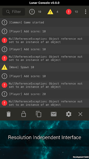 Lunar Mobile Console demo app (based on Unity Space Shooter tutorial).