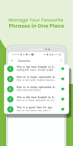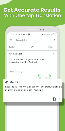- Appealing and clutter-free Spanish to English translation app layout