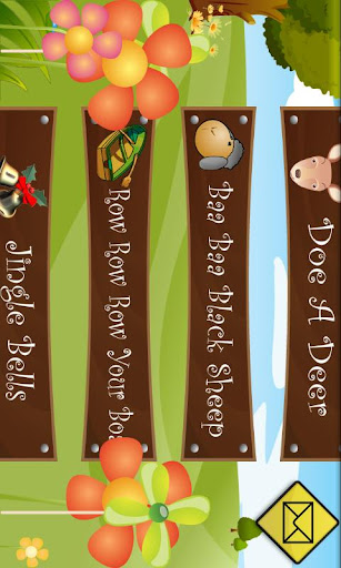 Nursery Rhymes - Piano Tunes has the tunes/notes/cues for 12 popular poems with colorful wallpapers, to appeal to toddlers and children.