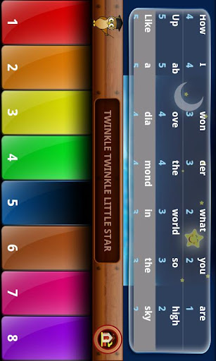 Depending on age group, kids can read the guide and play a tune themselves, follow the owl's example (highlighted keys) to play, or just tap keys to hear different music notes.