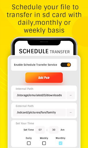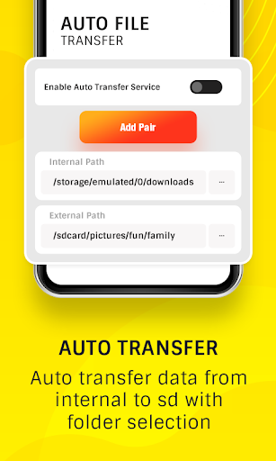 1. Auto Transfer : Just enable switch and selected path for source and destination it will automatically transfer data when got it on particular path. don't transfer manually save time and increase space of your internal storage.
