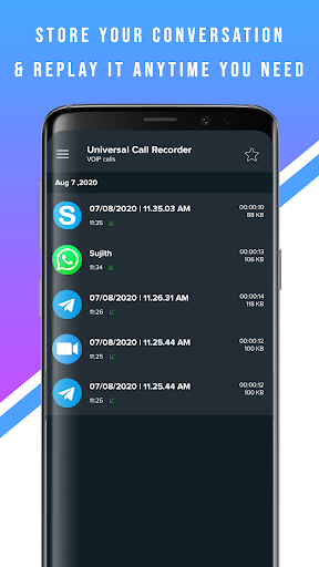 Supports Whatsapp, Skype, Zoom and Telegram calls for a wide range of Android devices and OS versions. You can store your conversation and replay it anytime you need it.