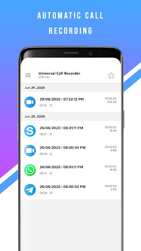 Call Recorder is able to detect Whatsapp, Skype, Zoom and Telegram calls automatically and start recording.