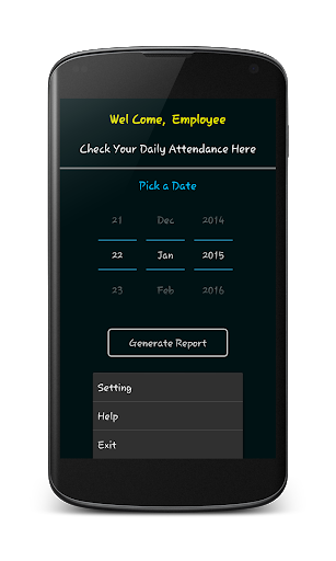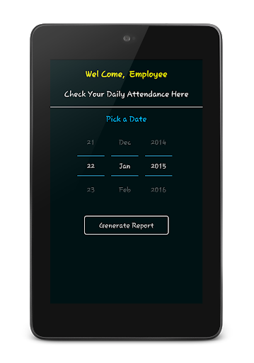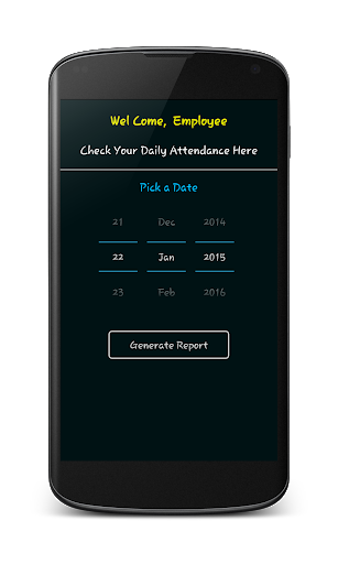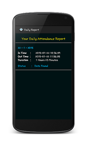 The app also contains reporting facility, Where User can see What was their In-Time and Out-Time by selecting date.