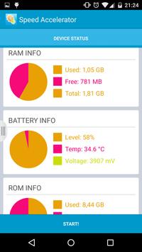 With the speed booster you will optimize the memories and end up with processes that are not used. All by pressing a button. Your phone will work as fast as before.