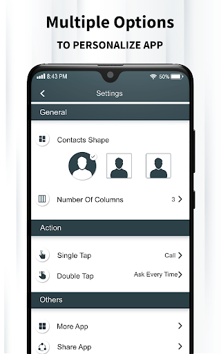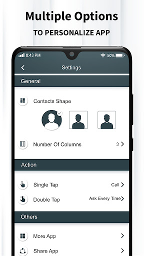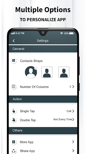 Change no of Columns : On a condition of big-screen size smartphone, this app is allowed to change no of columns. You can put 1 or 6 icons of contacts in a column. For this setting, just go in a number of columns options and select anyone and save it.