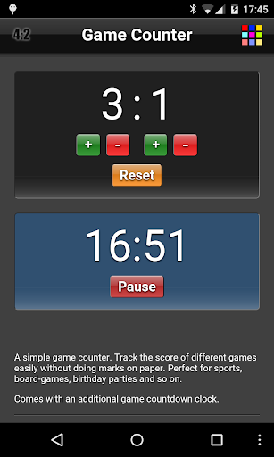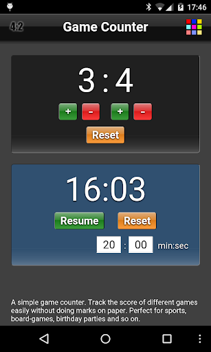 This is a game counter application. Track the score of different games easily without doing marks on paper. Perfect for sports, board-games, birthday parties and so on.