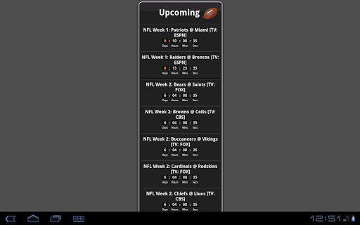 Updated for season 2020/2021 See the schedule and countdown to the upcoming and running NFL football games. Ad supported freeware