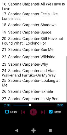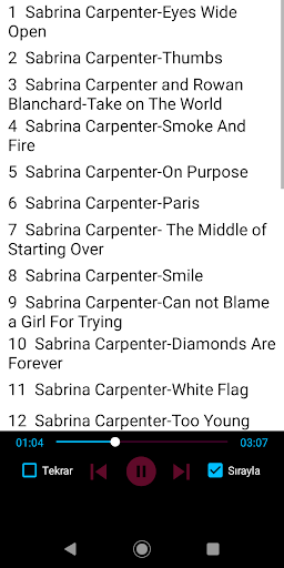 In this new version of application you may see Sabrina Carpenter best and popular songs. I hope you enjoy the her music.
