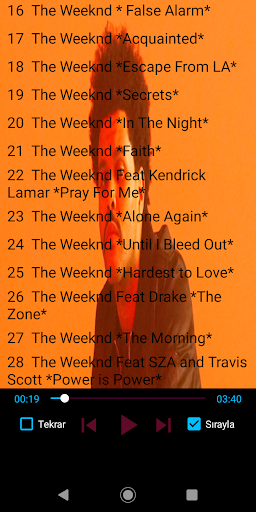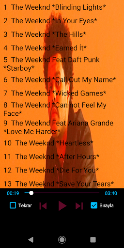 Stream and dowload the appliation to listen to The Weeknd songs. The most listened and chosen songs. click it and listen to them without ınternet. songs are definitely old and latest albums.