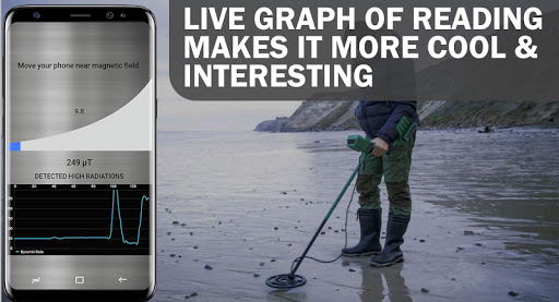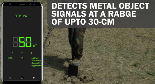 is an amazing application that can detect easily the presence of any metal object nearby by measuring the Magnetic Field value. This useful app uses the built-in magnetic sensor of your smartphone and shows magnetic field level in μT (microtesla). We know that magnetic field level naturally (EMF) is about 59μT (micro tesla) or 590 mG (milli gauss) and 1μT = 10mG.