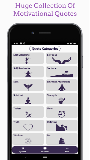 Each & every quote in this app is specifically chosen to motivate you & inspire you to strive through difficult situations in your life and help you in your inner journey to find your true self.