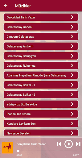 If you are a strong Galatasaray SK fan, you can easily listen to more than 60 songs and anthems. You can download them all to your device and set them as ringtones.