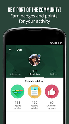 * A community of Packers fans! An in app commenting system, article tagging, reputation points and badges!