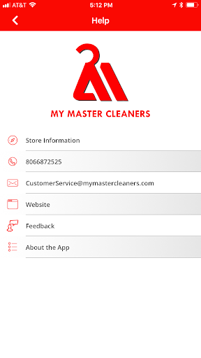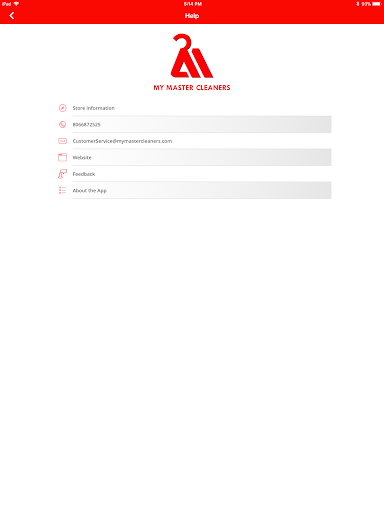 5) Quickly contact Master Cleaners by phone or email and access their website all directly from your device.