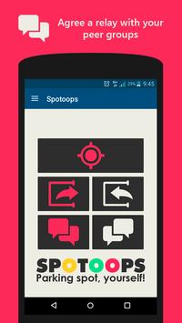 SPOTOOPS users establish agreements including relay unequivocally, allowing to find free parking on the street quickly, avoiding driving around, saving time, fuel and emissions.