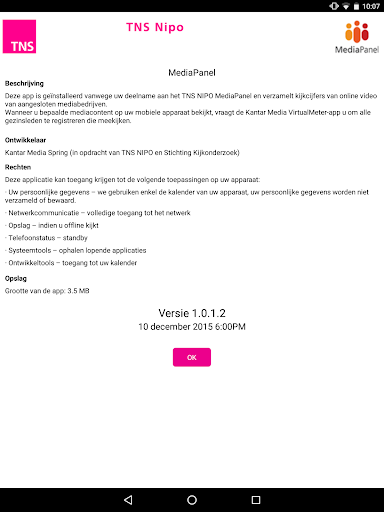 Deze app is geïnstalleerd vanwege uw deelname aan het TNS NIPO MediaPanel.