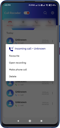 Auto Call Recorder application can be used as a voice recorder and auto call recording. Call Recorder: Automatic Call Recorder can automatically start audio recording when the user receives or make a phone call.