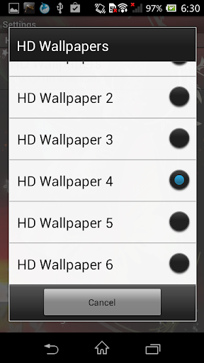 user has 6 options to select 6 HD wallpaper color for Mobile background screen.